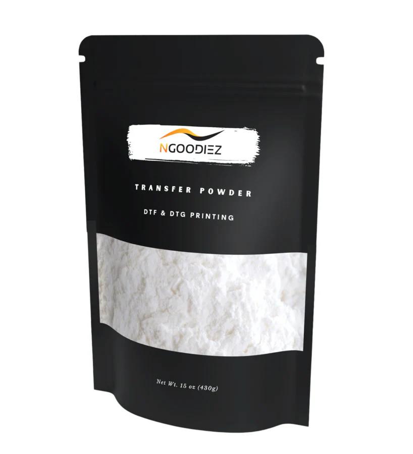 Hot melt powder: The hot melt powder needs to be applied to the design while the inks are still wet. Once melted, they become an adhesive that enables your design to stick to the garment’s surface. The overall feel of the print can be affected by how much powder is applied, its general properties, and even the surrounding area’s climate.