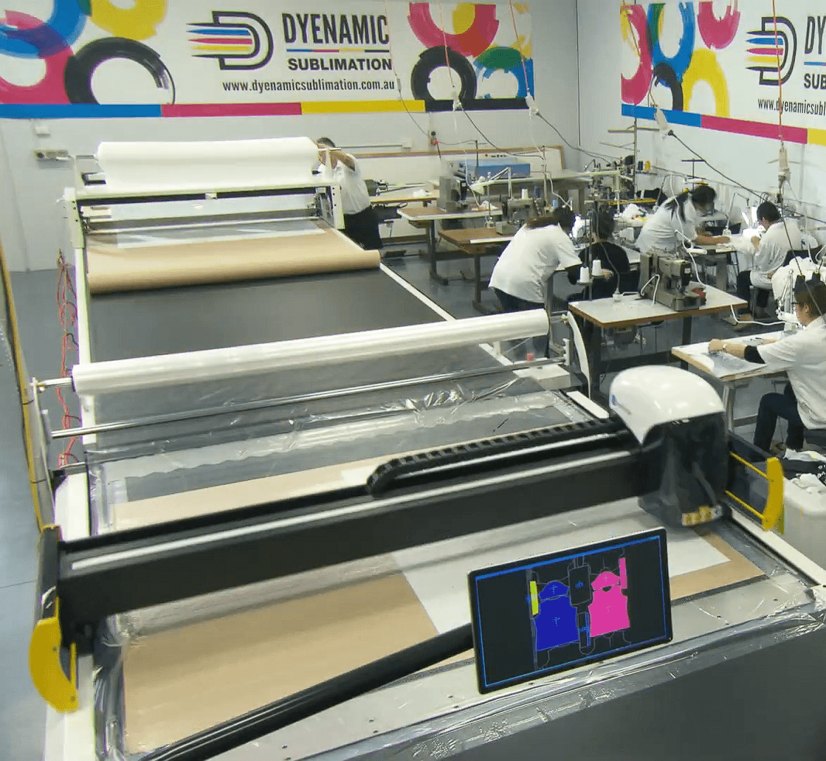 Like all-over printing, the design is first printed on dye-sub transfer sheets, then sublimated onto the substrate. You’re not applying the design immediately onto a pre-made garment. Instead, you’re assembling the entire garment from scratch.