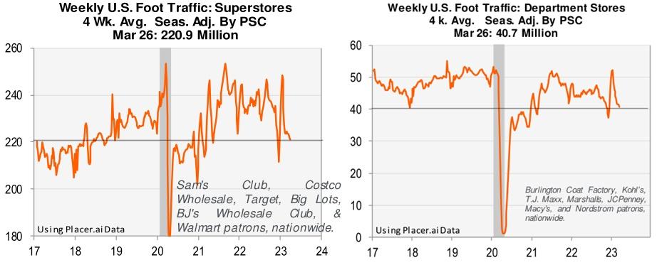Superstores and department stores paint a similar picture, with foot traffic fluctuating with changing prices and growing household savings. With Americans flush with cash post-Covid, many households stocked up on various groceries amidst fears of further economic uncertainties before tapering off in early 2023.
