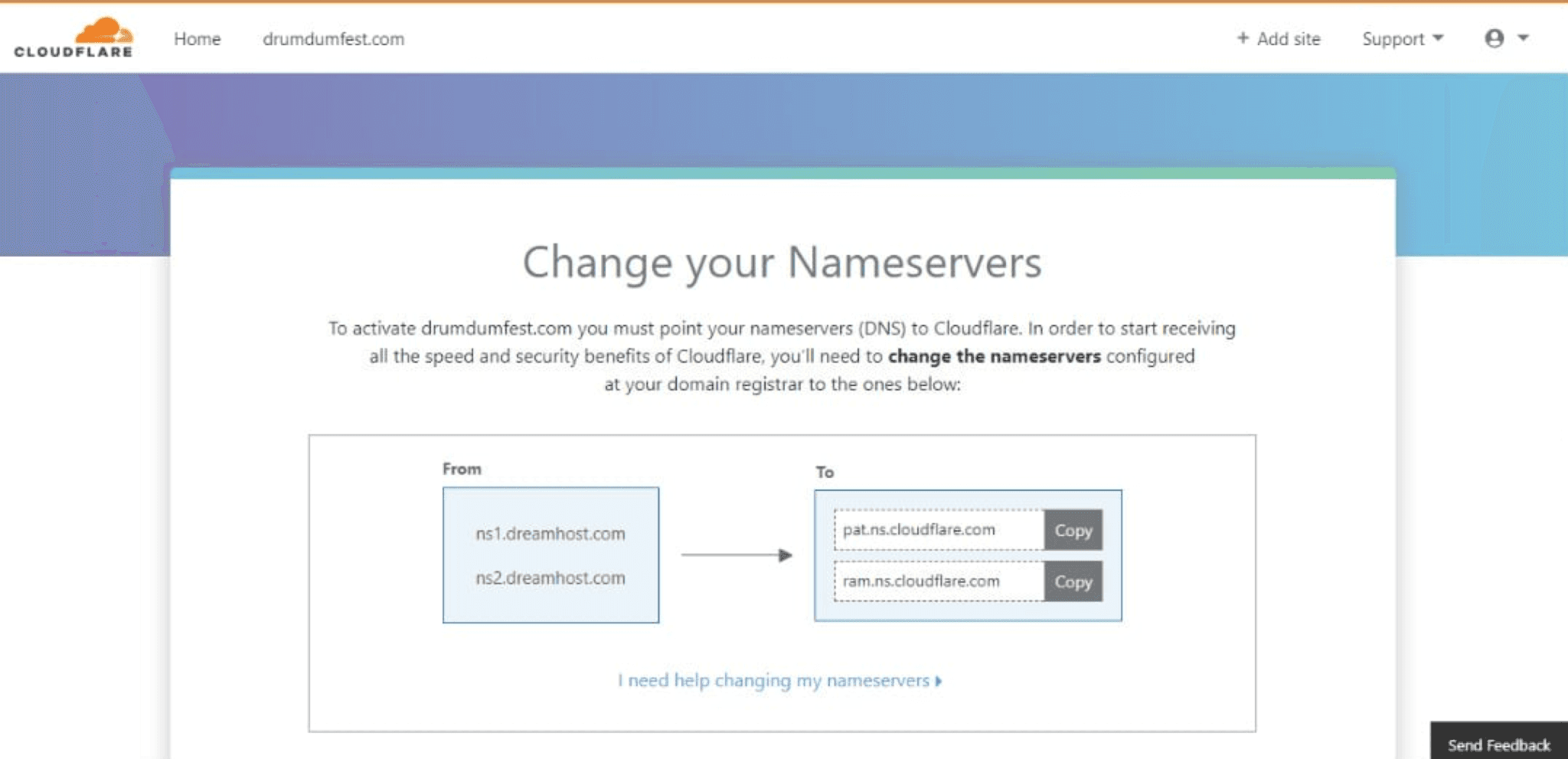 Next you will change your Nameservers from your registrar to Cloudflare. Cloudflare has put together this guide to help you with the process.