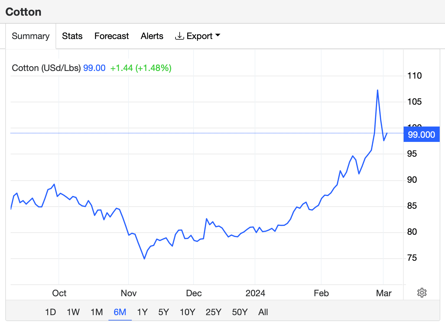 Sticky, sticky inflation are causing cotton prices to see a tailwind and though prices are not as it is in pre-covid times, it is still not as high as it was 2 years ago.
