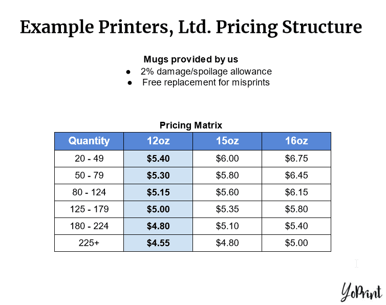 Not having to buy any new equipment is a boon since your budget can instead be directed to paying a contract printer to print promotional items for your shop. Most contract printers will offer preferential rates depending on your order size: the more items you need to be printed, the lower your overall cost. This usually incentivizes print shops with larger orders to do business with the contract printer; any savings are always welcome.
