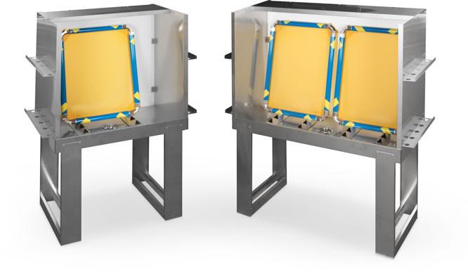 - Washout booth: Gives printers a space to clean their screens while providing a safe way to dispose of chemicals and emulsion by-products. Booths come in various sizes to accommodate multiple screens.