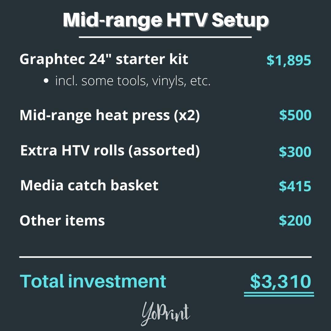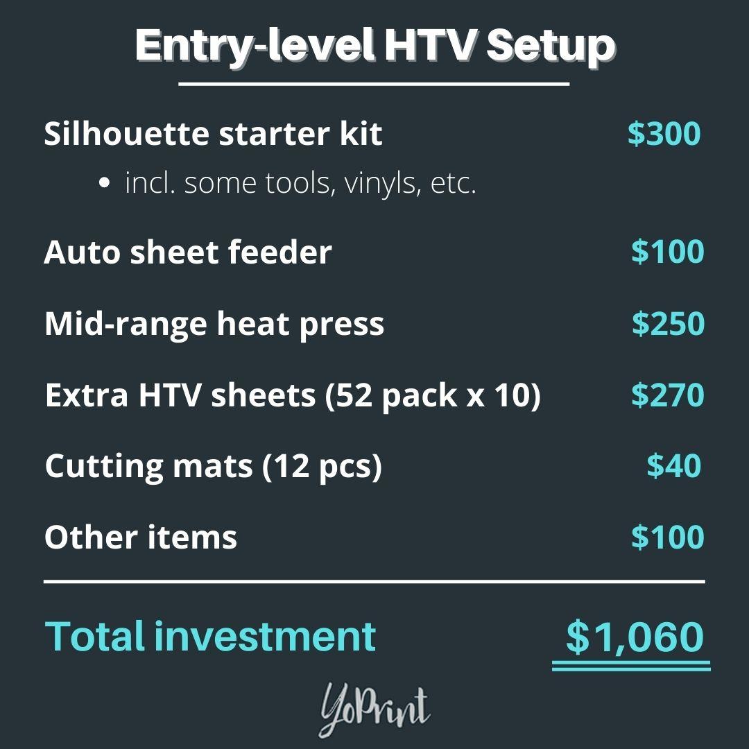 Let’s look at an example where you plan on starting your own HTV decorative printing business, but you want to start small first. This gives you some time to learn the method and experiment with different HTV applications.
