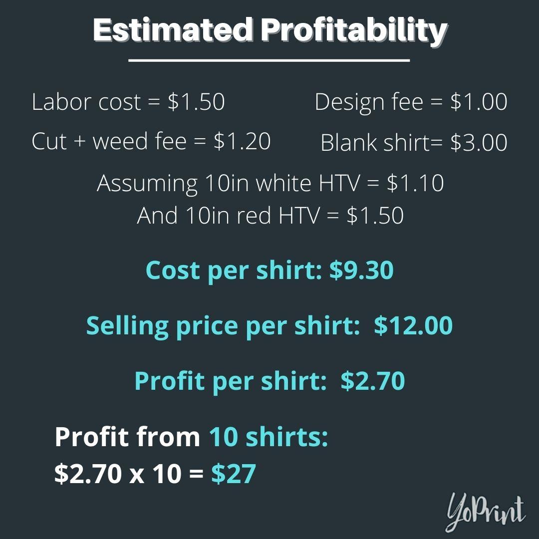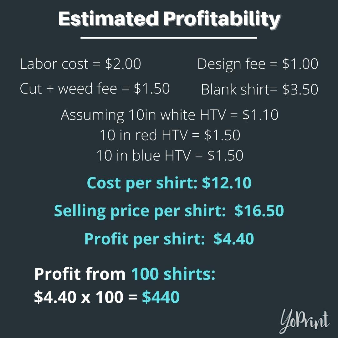 Remember that these are only estimates. With how there are plenty of different kinds of HTV brands out there, you could find one sold at a decent price and still has good quality. This way, you can keep costs down but still have some room to mark up your products’ selling price. You may need to tinker with the estimates to get something that will work for your shop.