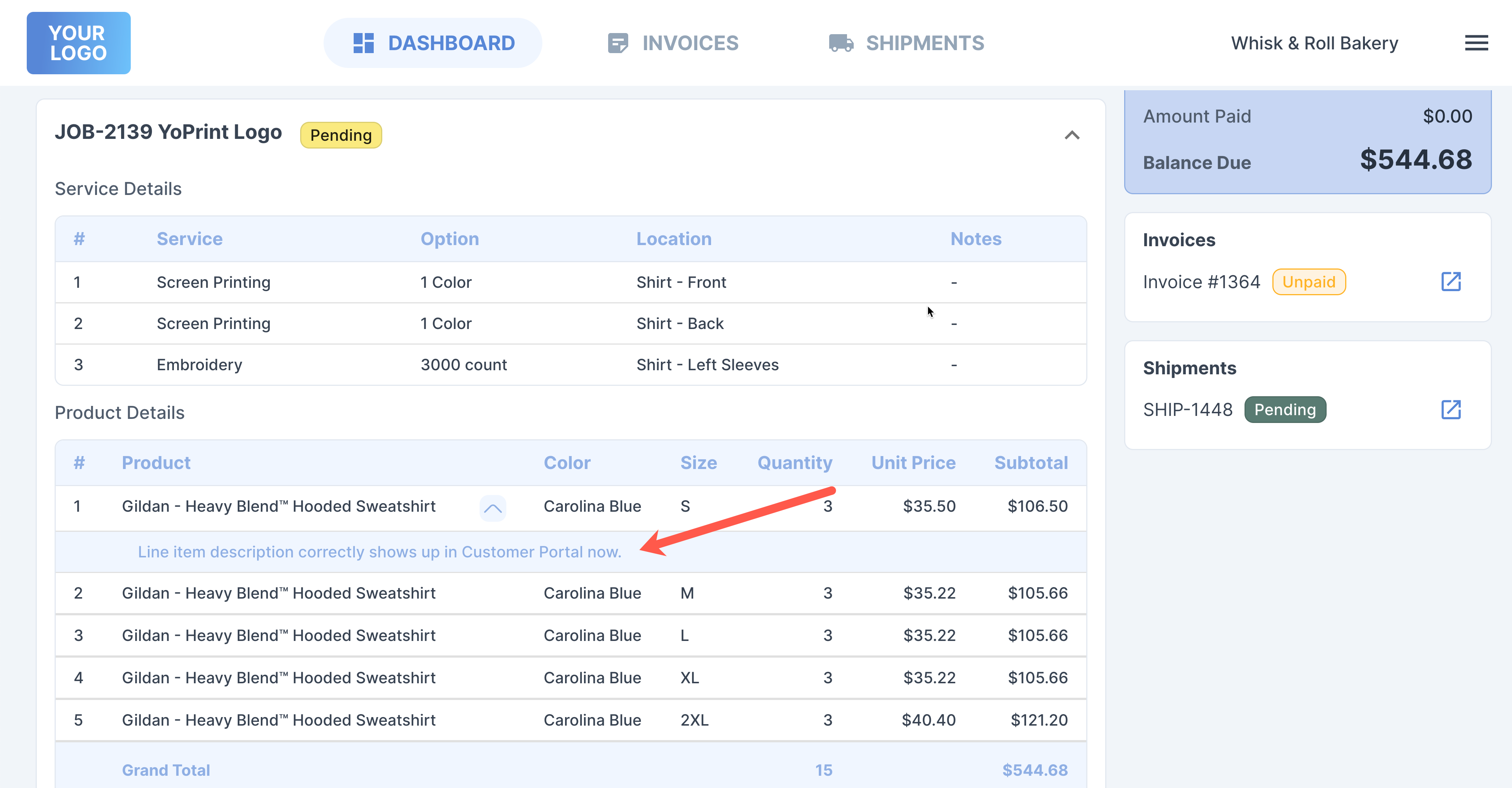 Line item description correctly shows up in Customer Portal now.