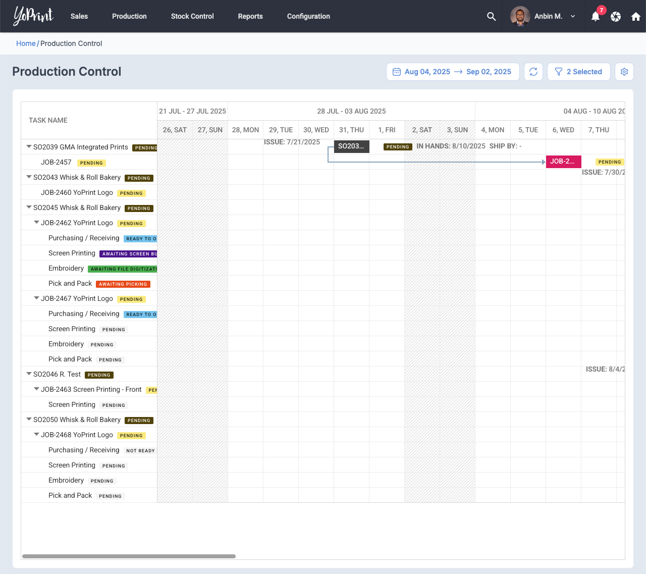 Production Control Page Redesign