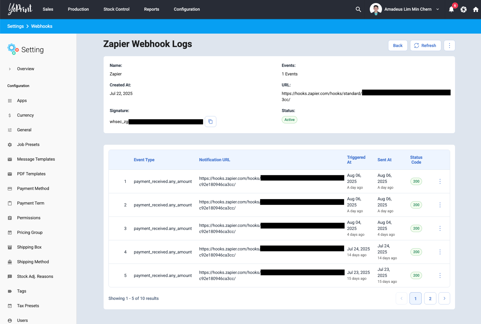 Redesigned the webhooks page with our modern theme and updated UI components for a consistent experience across the platform. We've also fixed some usability issues with the page. The Notification URL column serves as an audit trail reference.