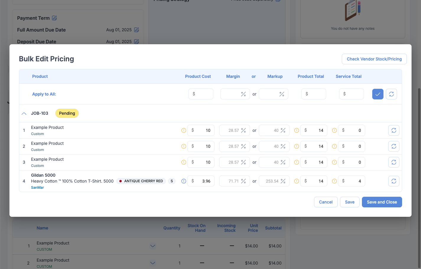 We've added a new functionality that allows you to edit the pricing at one go including specifying custom markups / margin either on the entire order level or per job level.