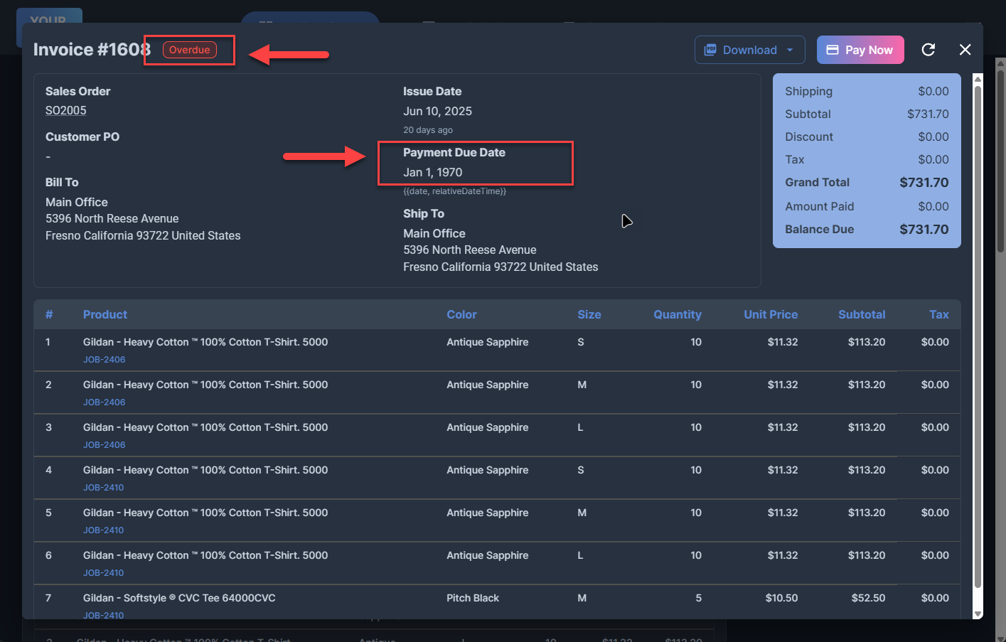 Customer Portal: Invoice Due Date Displayed Incorrectly