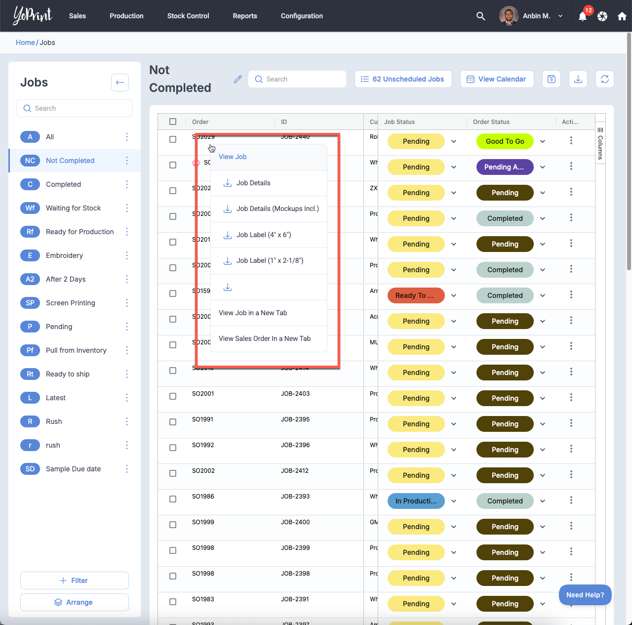 We've update the context menu for Job List page to first include a new "View Sales Order in a New Tab" option and secondly to renamed the "View" option to "View Job" and "Go to Page" to "View Job in a New Tab" which now opens it in a new tab.