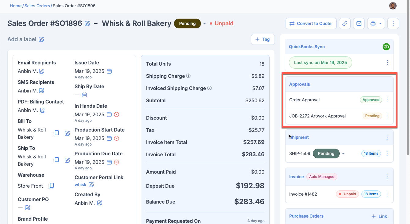 Sales Order Detail Page: Approval Sidebar Bugs