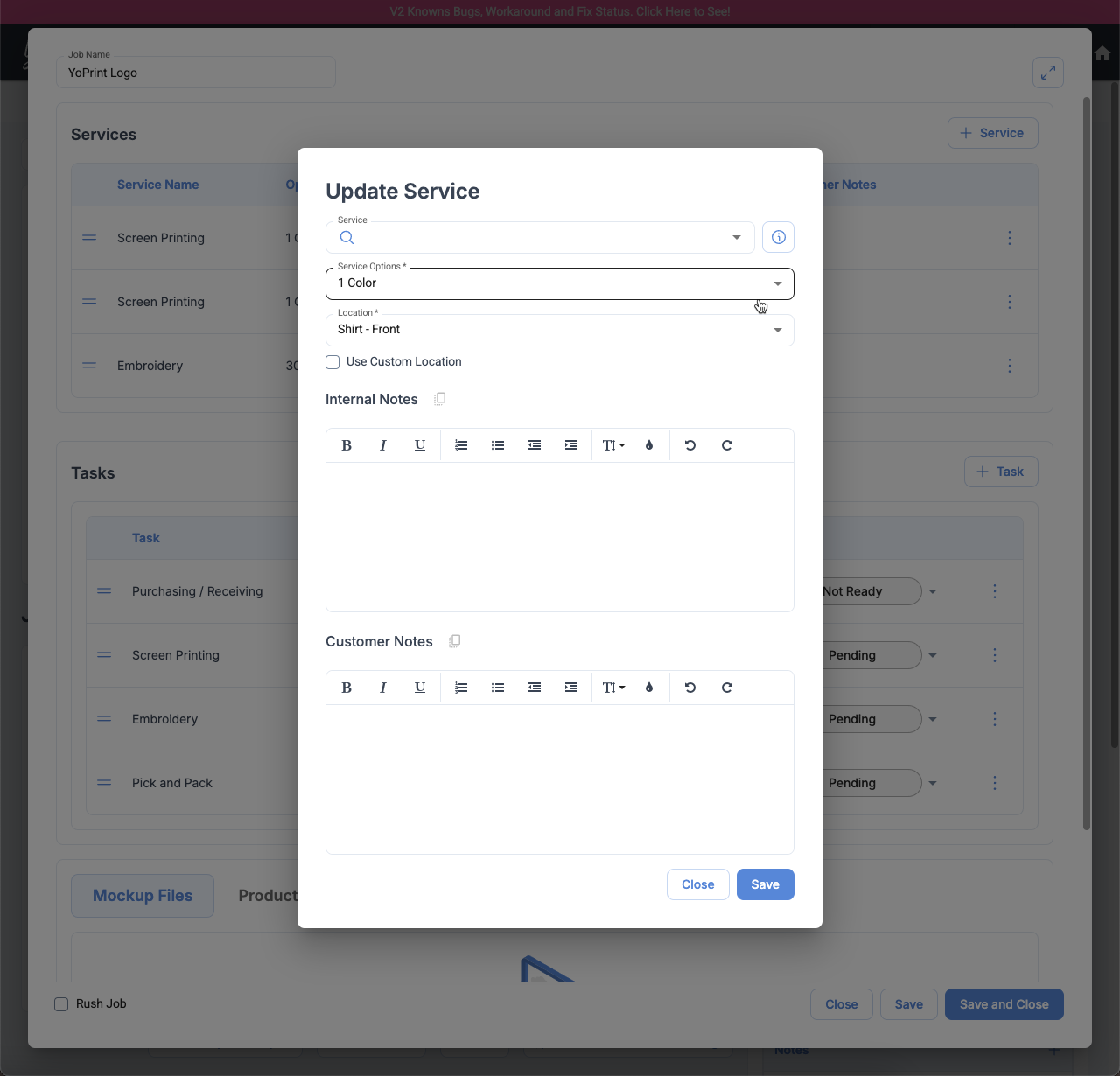 Job Edit Dialog: Allow Editing Services Notes After Cloning