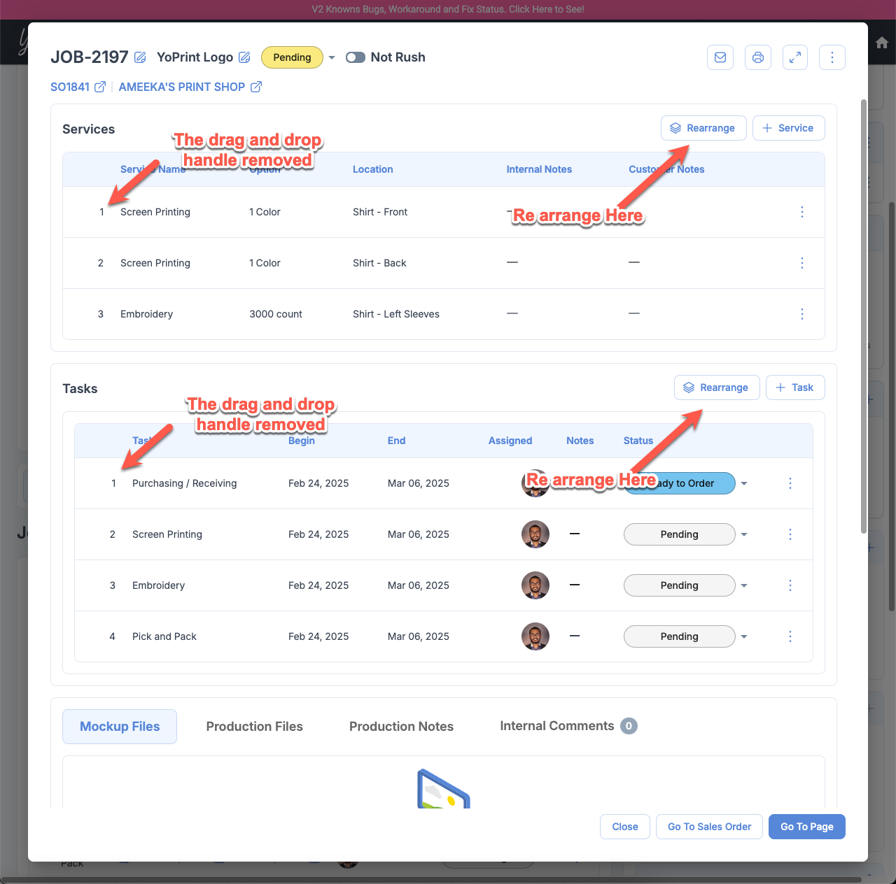 1. Drag-and-drop re-arranging of services and tasks has now been to a button. We find that everyone is accidentally dragging when they didn't intend to.