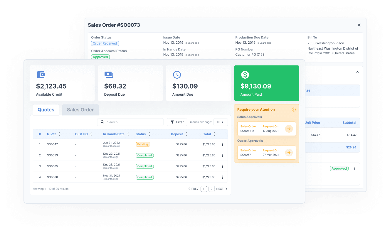Empower your customers with YoPrint's fully-fledged customer portal, complete with all the tools needed to get customer communications right. Customers can approve invoices and artwork, make payments through several payment gateways, and communicate with you through a messaging system in each sales order. No more confusion, only stellar customer communication.