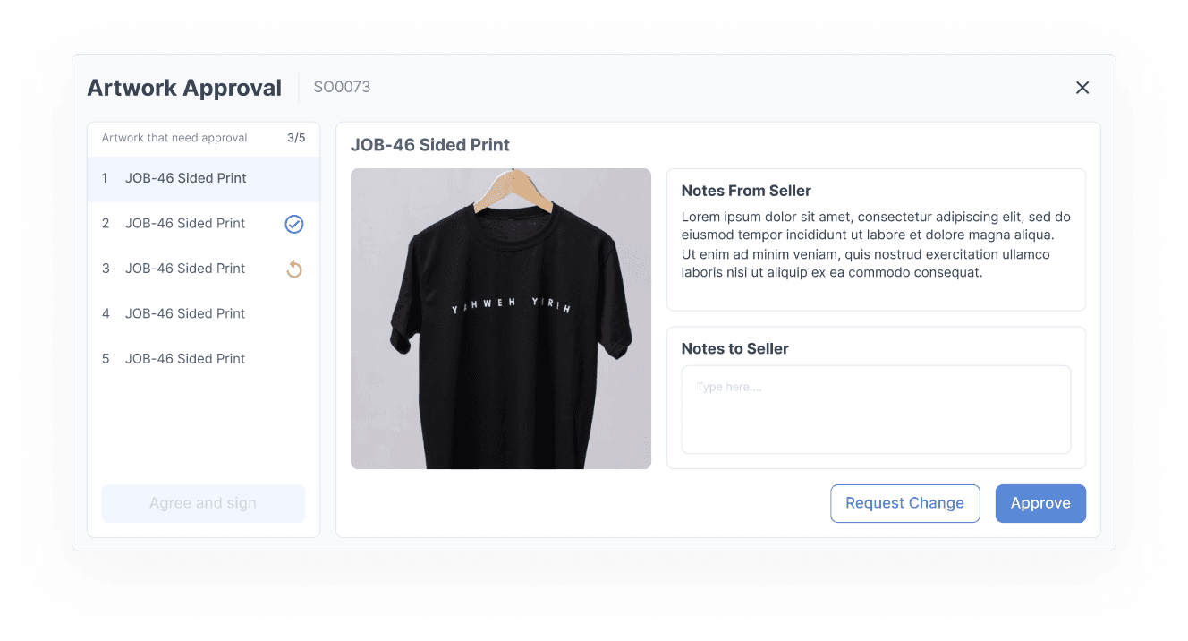 Send professional-looking artwork approval requests directly from YoPrint. Our granular artwork approval system allows your customers to approve or request changes for each artwork Individually. Going through multiple iterations? We keep a complete history of artwork approvals for added transparency.