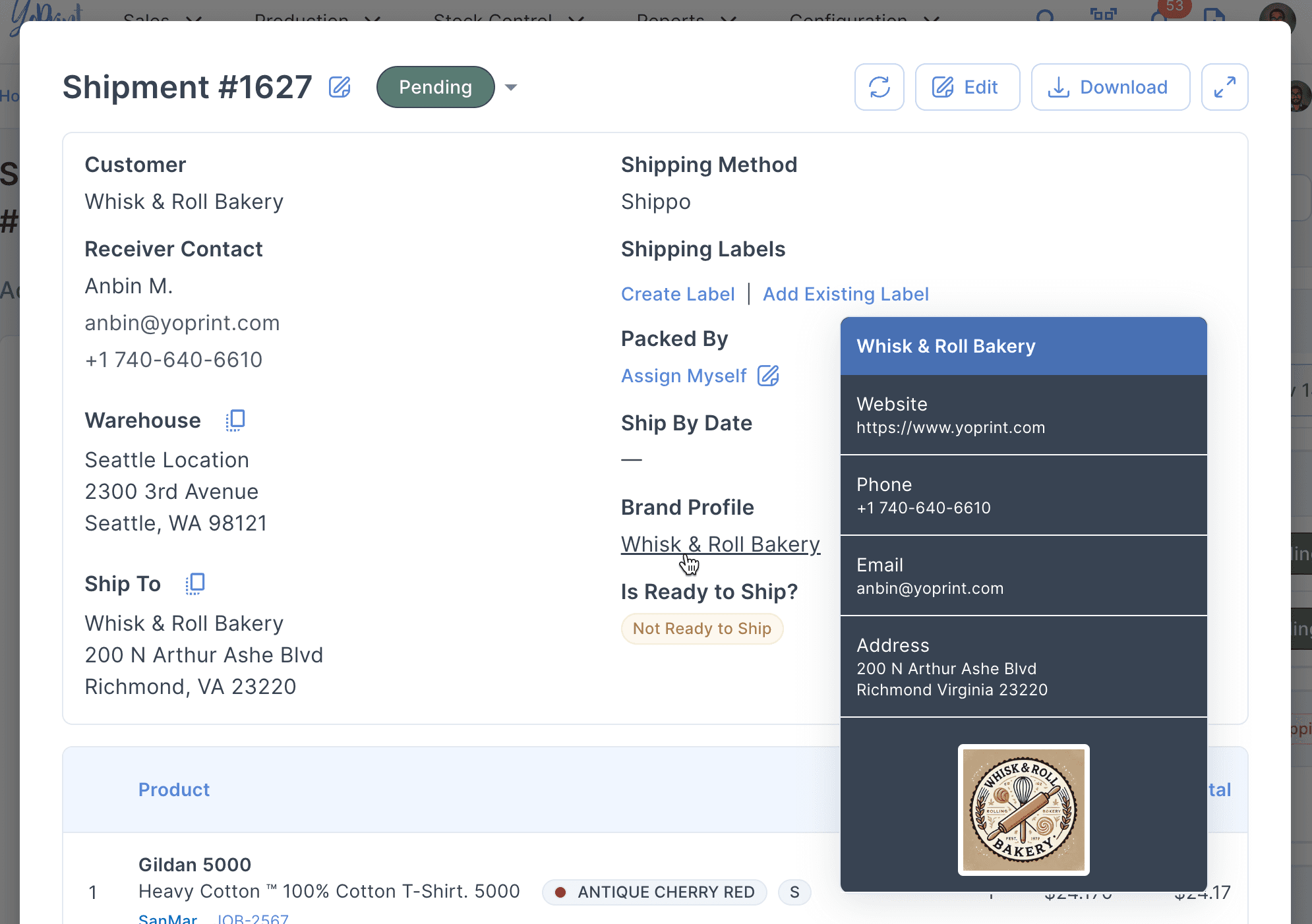 Full brand contact details are now visible when you hover over the Brand Profile in the Shipment Details dialog.