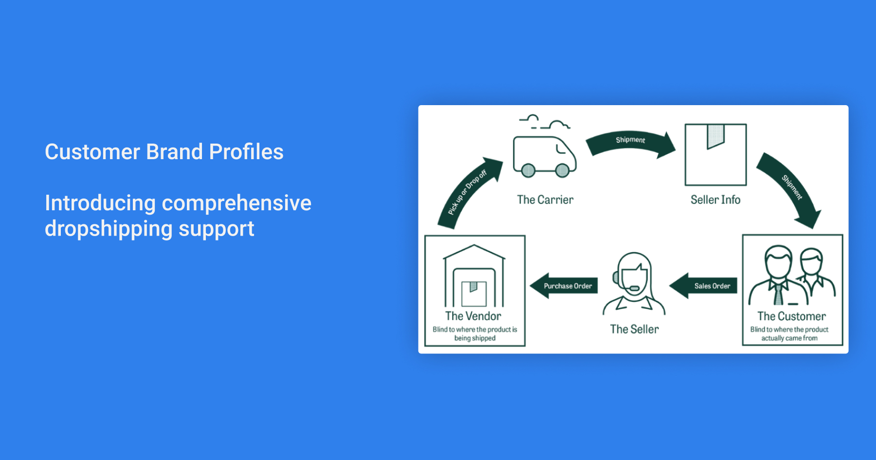 A typical dropshipping scenario goes like this. Your customer, let’s call them Crimson Florist, has a business that sells Crimson Florist merchandise. A consumer, let’s call him Jason, places an order with Crimson Florist for 10 t-shirts. Crimson Florist then places a purchase order with you for 10 t-shirts but to be shipped to Jason. You print the t-shirts, generate a packing slip with the name Crimson Florist and their business address, and send it to Jason.