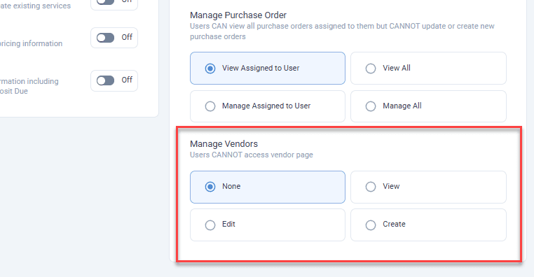 Vendor Permission Improvements