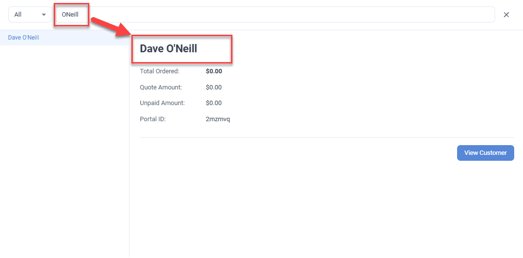 - Customer search automatically accounts for apostrophe variations