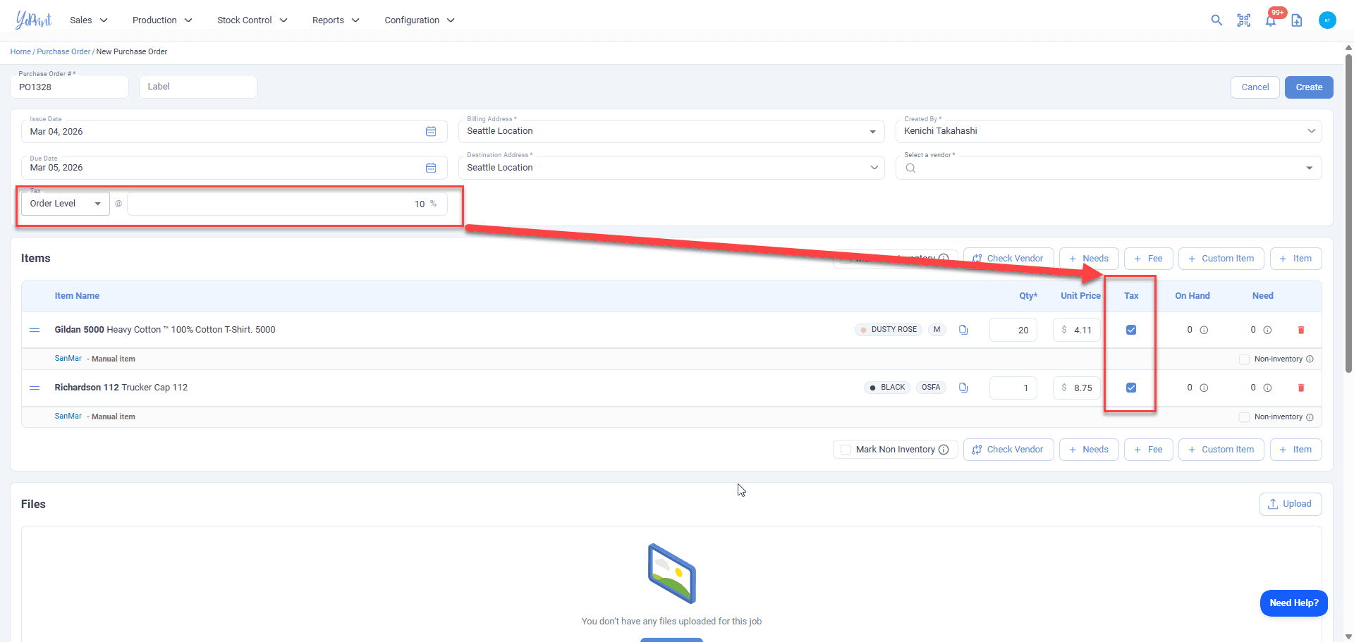 Purchase orders have been updated with a refreshed interface and minor UI improvements. The system now supports both order-level and line-level tax calculations.