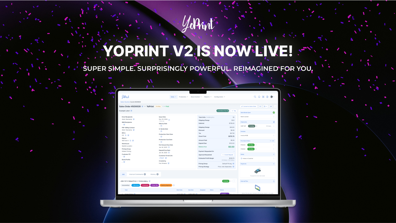 Hey there! This is Anbin - the guy who does mass quantities of code at YoPrint with the help of his fellow teammates. I am incredibly happy to announce the launch of V2! I know we've been working on this for more than a year at this point, and thank you for your patience and for giving us the opportunity to work on this. We will be working around the clock for the next few weeks, squashing any bugs that pop up and fixing any usability issues. Please bear with us as we make this transition. It's going to be worth your time!